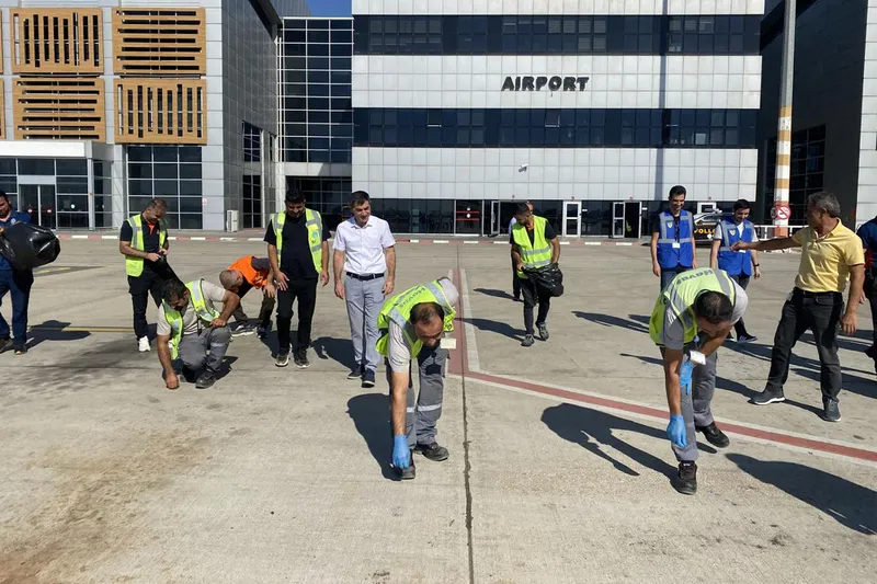 Havalimanı pistleri, apron ve taksi yollarında düzenlenen yabancı madde temizliği yürüyüşüne, havalimanında faaliyet gösteren tüm kurum ve kuruluşların personeli katıldı.