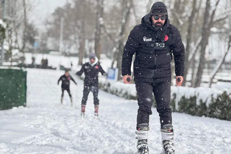 "Spor Her Yerde" sloganıyla çeşitli etkinlikler yapan Esenler Belediyesi Gençlik ve Spor Hizmetleri Müdürlüğü üyesi gençler, İstanbul'da etkili olan kar yağışı sonrasında profesyonel kayak takımlarını alıp 15 Temmuz Millet Bahçesi'nin yolunu tuttu.