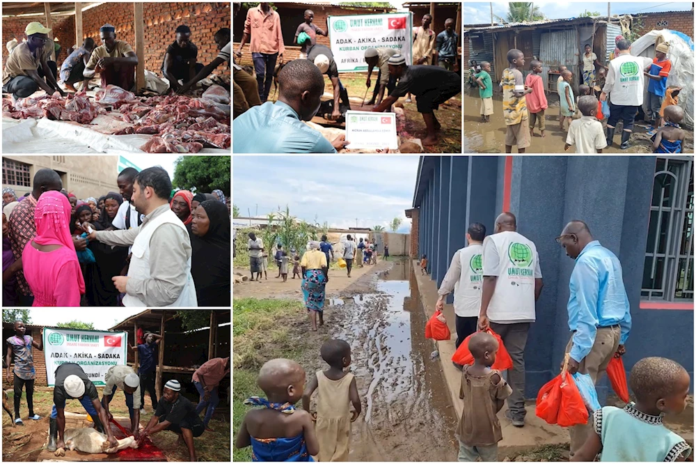 Umut Kervanı, Bujumbura şehrinin Gatumba bölgesi ve Cibitoke şehrinin Rugumbu ilçesinde kestiği yaklaşık 70 küçükbaş kurbanı, belli miktarda pay ederek selden etkilenen mağdurların bulunduğu çadırlarda ve farklı bölgelerdeki ihtiyaç sahiplerine dağıttı. Yaptıkları çalışma ile ilgili konuşan Umut Kervanı gönüllüsü Ömer Polat, hayırseverlerin bağışladığı adak, akika, sadaka ve şükür kurbanlarını keserek selden etkilenen halka dağıttıklarını söyledi.