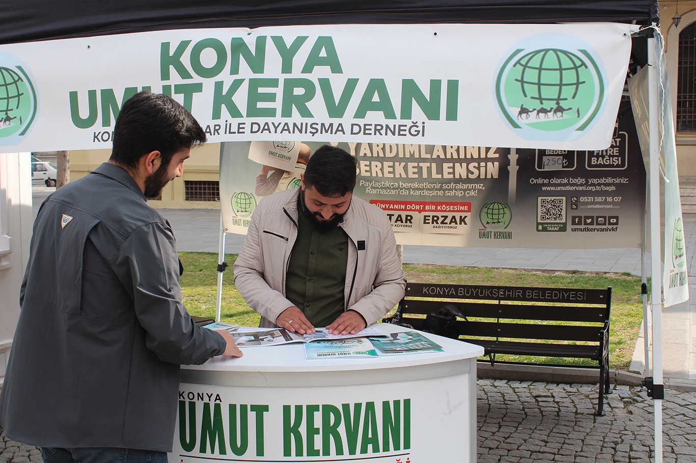 Umut Kervanı Konya zekât, fitre, sadaka, kurban gibi bağışların toplanması için Ramazan standı açtı.