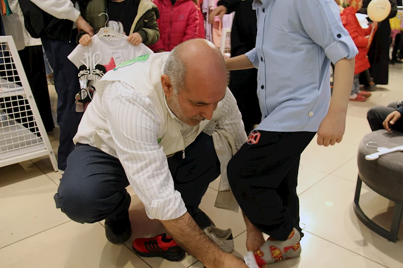 Aileleriyle birlikte mağazaya gelerek diledikleri ayakkabı ve kıyafeti alma imkânı bulan çocuklar, Ramazan Bayramı'na yeni kıyafetlerle girmenin sevincini yaşadı.