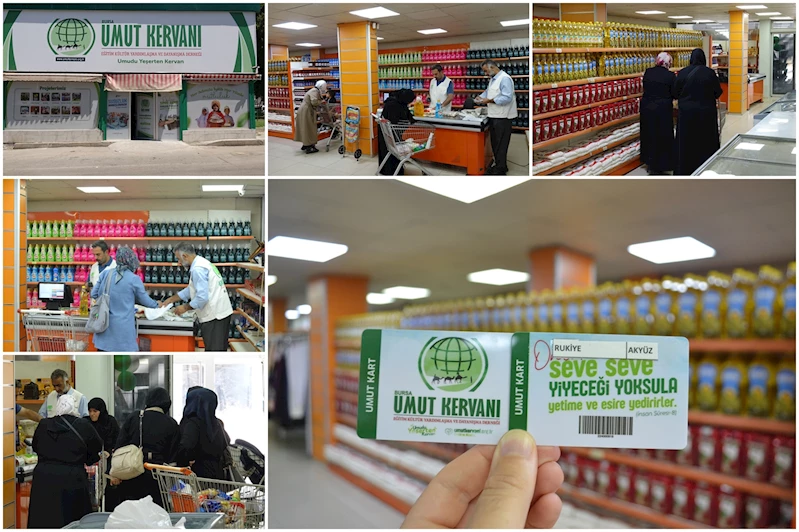 Bursa Umut Kervanı Derneği Başkan Yardımcısı Sadık Tekin, projeye ilişkin yaptığı açıklamada "Umut Kervanı olarak geçen ay açılışını yaptığımız sosyal marketimiz faaliyetlerine başladı. Bu ay, ilk yardım faaliyeti olarak ihtiyaç sahibi 165 aileye gıda kartlarını verdik. Ailelerimiz bu kartlarla kırmızı etten giyime, temizlik ürünlerinden ayakkabıya kadar birçok ihtiyacını karşıladı" dedi.