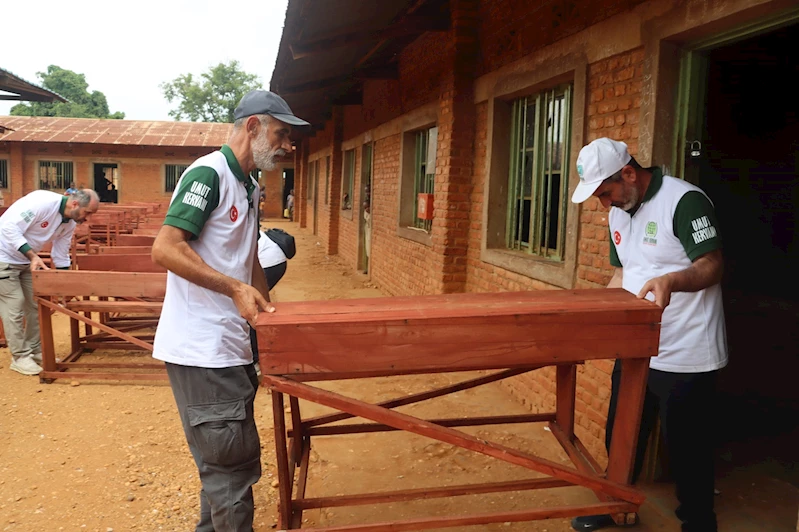 Günlerdir Burundi'de bulunan ve çeşitli yardım çalışmaları yapan Umut Kervanı ekipleri, hayırseverlerin bağışladığı adak, akika ve sadaka kurbanlarının yanı sıra, medrese öğrencilerine dağıttığı yüzlerce Kur'an-ı Kerim ile sel mağdurlarına yaptıkları battaniye yardımlarının ardından bu kez bir okulda öğrencilerin ihtiyacı olan sıra ve masa yardımında bulundu. (İLKHA)