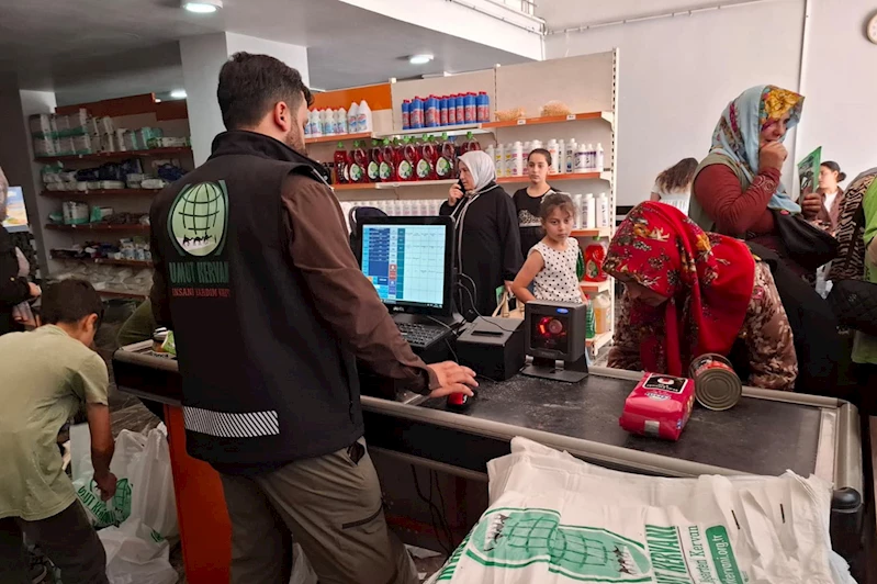 Sosyal market uygulamasıyla gerçekleştirilen yardım organizasyonuyla, ihtiyaç sahibi aileler Umut Kervanı’na gelerek ihtiyaçlarını gönüllerince seçme imkânı buldu.