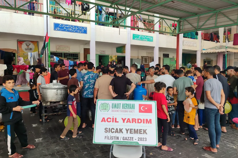 İşgal rejiminin saldırıları altında inleyen mazlum Gazze halkına yardım ulaştırmak için çalışmalarını sürdüren Umut Kervanı, kurduğu aşevi ile her gün binlerce kişiye sıcak yemek ikramı yapmanın yanı sıra gıda, ilaç ve temizlik malzemesi dağıtımına da devam ediyor.
