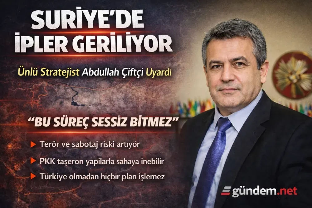 Suriye sahasında tansiyon yükseliyor. Ünlü stratejist Abdullah Çiftçi, bölgedeki terör, sabotaj ve provokasyon risklerine dikkat çekerek, sürecin sessiz ve sorunsuz tamamlanmayacağını vurguladı. Çiftçi’ye göre, Türkiye’nin kabul etmeyeceği senaryolar masada ve sahada yeni bir kırılma eşiğine girildi.