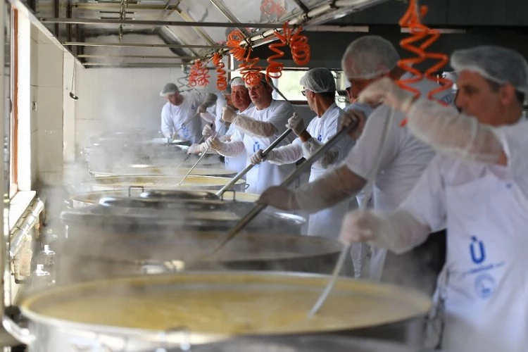 İSTANBUL (İGFA) - Ramazan ayının gelmesi ile birlikte sabahın erken saatlerinde mesaiye başlayan aşevi çalışanları, yaşlı, kimsesiz ve evinde yemek pişiremeyen ihtiyaç sahibi binlerce vatandaş için dev kazanlarda tonlarca bakliyat, yağ, et ve sebzeden oluşan özel menüler için yemek pişiriyor. Ekipler, pişirilen 30 bin kişilik yemeği ihtiyaç sahiplerine 10 ayrı noktadan ulaştırıyor.