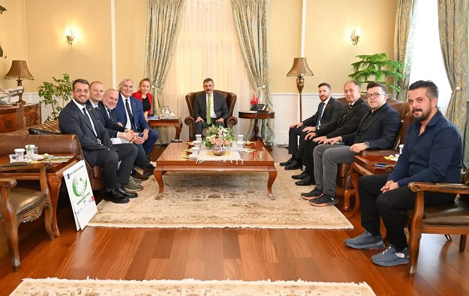 Erzurum Valisi Mustafa Çiftçi, Avrupa Kış Sporları Başkenti (ACES) Erzurum Programı heyeti Hugo Alonso, Gianfrencesco Lupatelli, Damyanrumenov Dikov, Adem Sever, Ahmet Dal ile birlikte Erzurum Gençlik ve Spor İl müdürü Levent Çakmur’u makamında kabul etti.