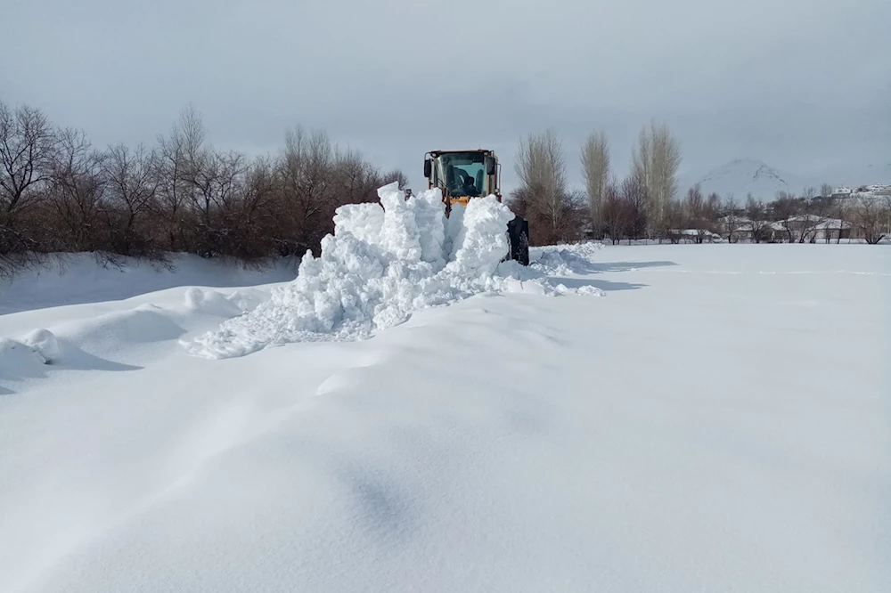 Van'ın merkez İpekyolu Belediyesi ekipleri kar ve tipi nedeniyle kapanan kırsal mahalle genişlemesini genişletmek için çalışmalarını sürdürüyor.