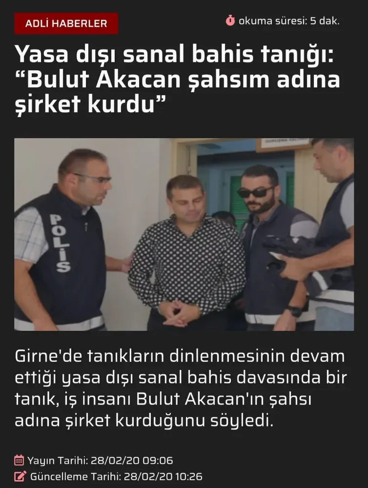 Bulut Akacan'a ait olduğu belirtilen "KALEBET VE DOBRABET" isimli bahis şirketlerinde çalışan birçok kişi, polis tarafından tanık olarak mahkemeye çıkarıldı.