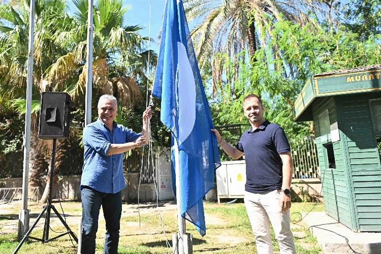 Konuşmaların ardından Başkan Uysal, Erenkuş plajında mavi bayrağı göndere çekti.