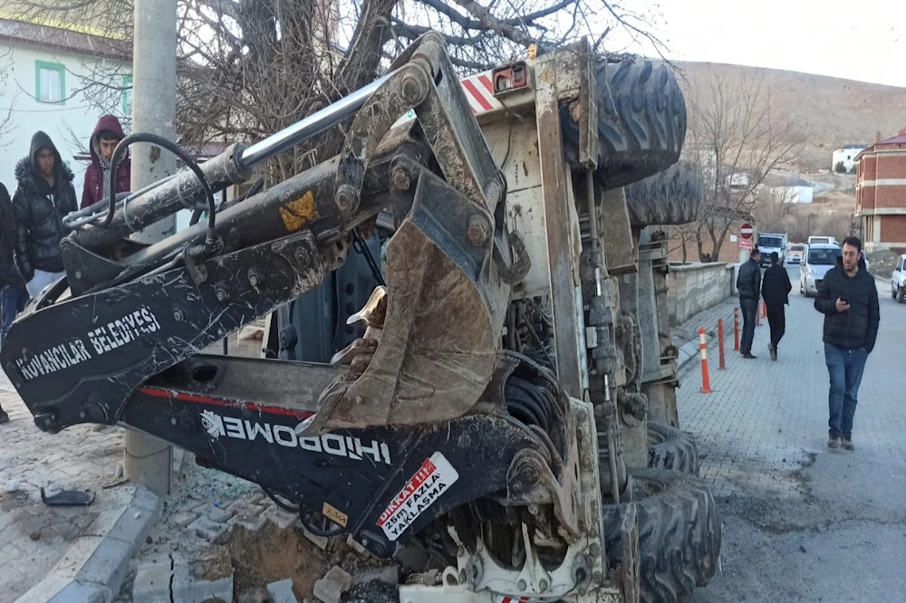 Virajı alamayan iş makinası devrildi : 1 yaralı
