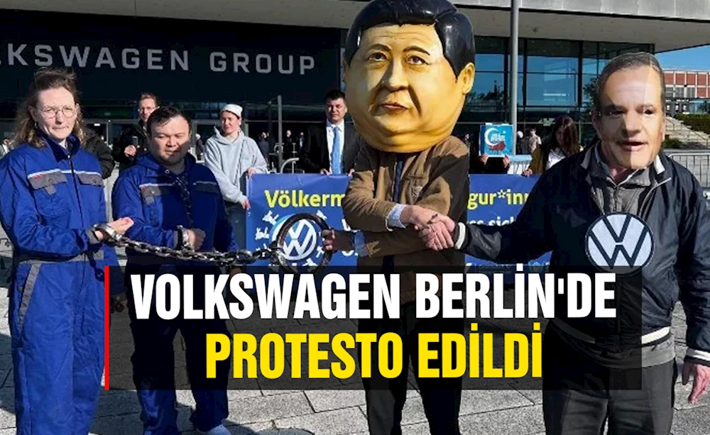 Bu eleştirilerden biri de Almanya'nın ünlü otomobil markası Volkswagen'e yönelik gerçekleştirilen protesto oldu. Berlin'de Uygur Türkü ve Alman insan hakları aktivistleri, Volkswagen'in Doğu Türkistan'da Uygur Türklerinin emeğini sömürdüğünü savunarak şirket binası önünde protesto gösterisi düzenledi. Activistler, ellerinde soykırım suçlusu Xi Jinping'in kafasının kuklasını taşıdı ve Volkswagen CEO'su Thomas Schafer'ın maskesini takarak zincirlenmiş, Mavi renk tek tip işçi kıyafeti giydirilmiş Uygur Türklerinin durumuna dikkat çekti.