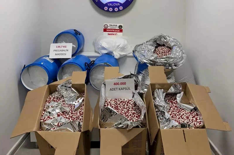 İl Emniyet Müdürlüğü Narkotik Suçlarla Mücadele Şube Müdürlüğü ekipleri, 2 araçta yaptıkları aramada, sentetik ecza yapımında kullanılan 139 kilo 700 gram pregabalin maddesi ile dolum yapılmaya hazır 400 bin adet sentetik ecza kapsülü ele geçirdi.