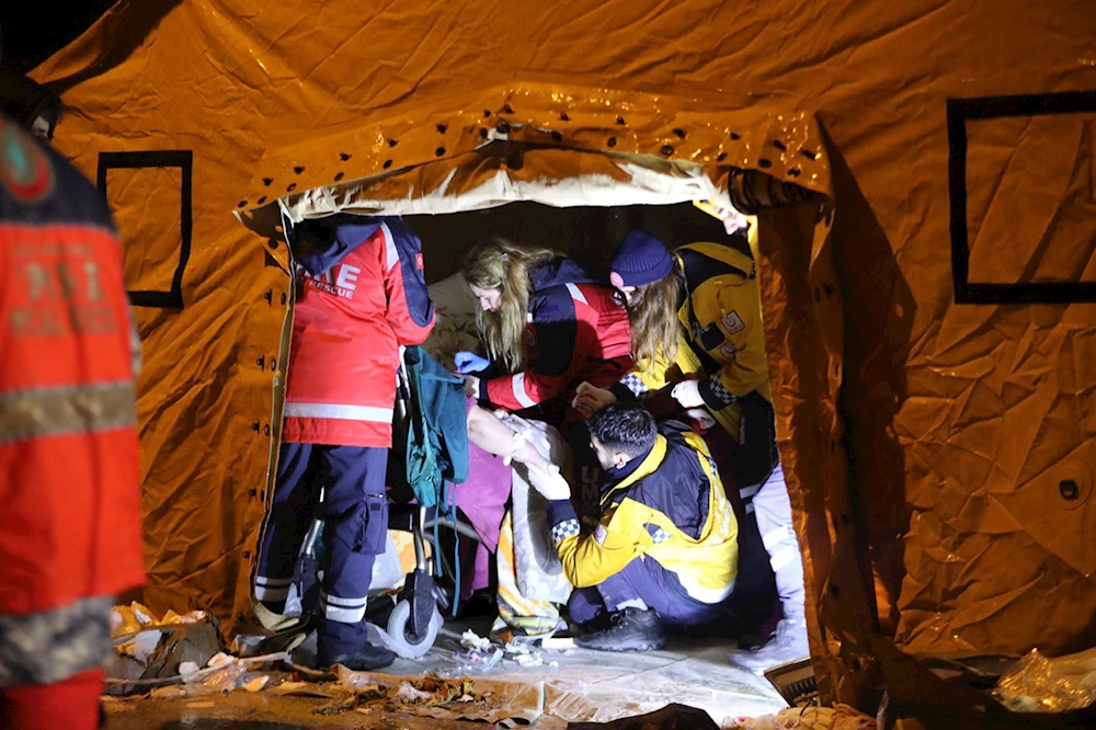 Afetin yaşandığı şehirlerimizde yaralılara ve hasta depremzedelere ilk tıbbi müdahale, kurulan sahra çadırlarında yapılıyor. İlk müdahalenin ardından hastanelere nakiller sağlanıyor. Acımızı azaltmak için tüm gücümüzle sahadayız. pic.twitter.com/kAIfHYToTz