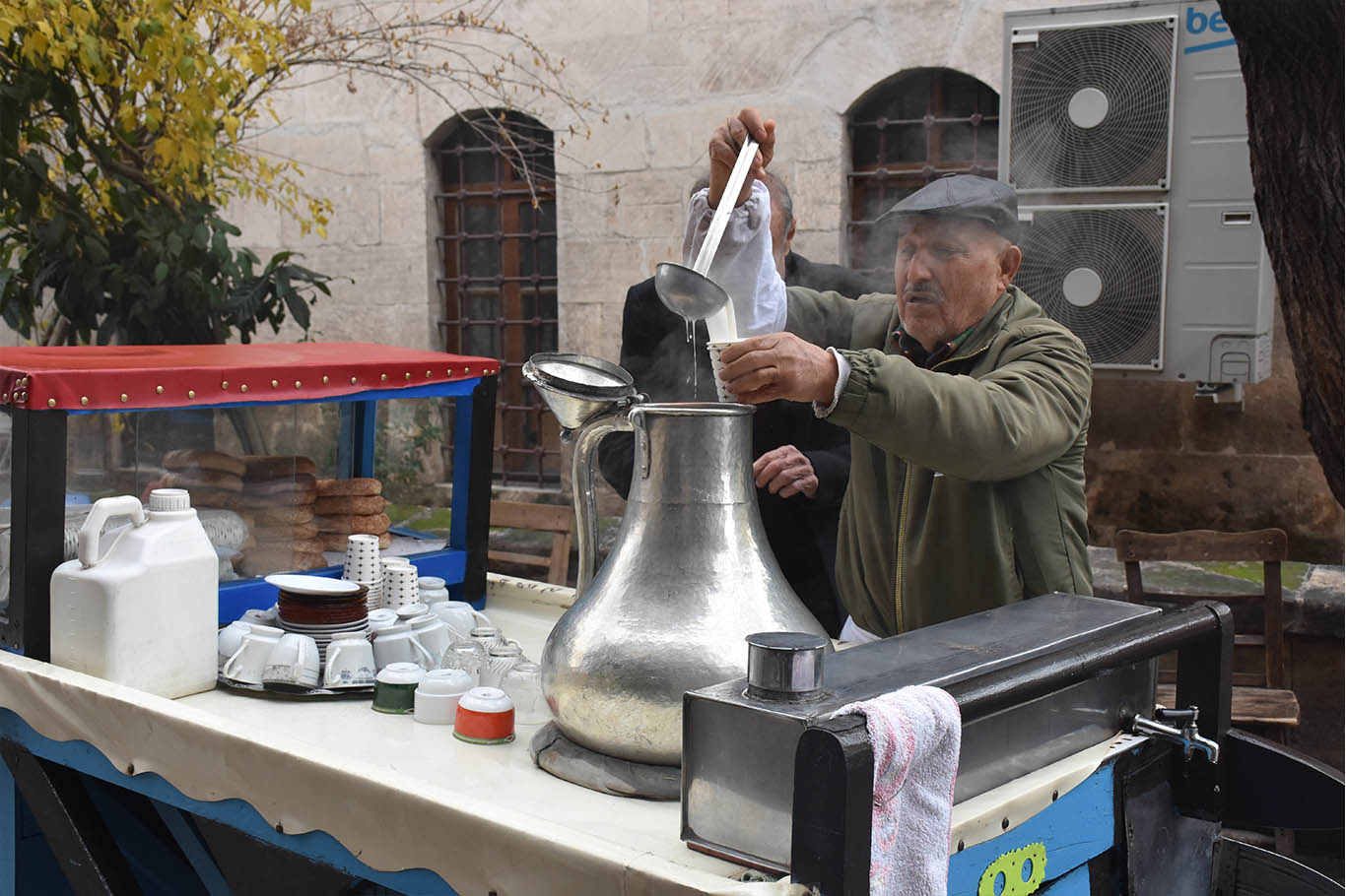 Adana'da 50 yıldır salep işiyle uğraşan ve Salepçi Abuzer Usta olarak sevilen Abuzer Örper, salep satarak durumunu sağlıyor.