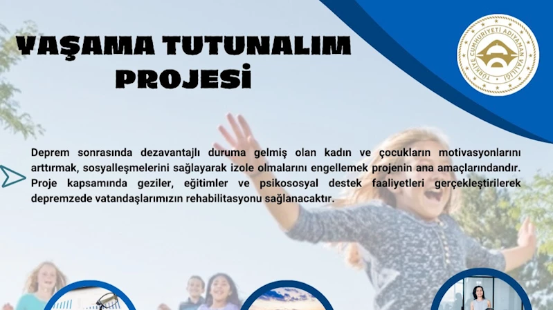 Adıyaman Valiliği, depremzedelere yönelik "Yaşama Tutunalım Projesi"ni başlattı. Proje, Aile ve Sosyal Hizmetler İl Müdürlüğü ve GAP İdaresi'nin desteğiyle 720 kişiye psikososyal destek sunacak.