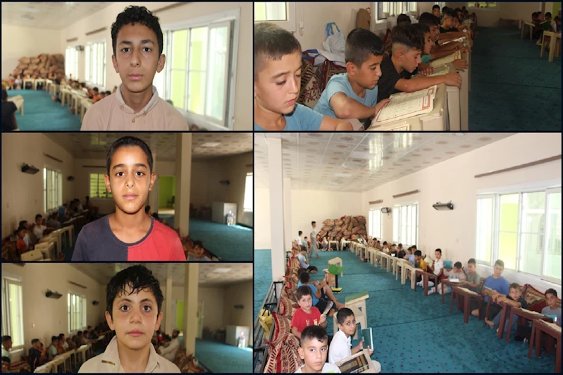 Mardin’in Artuklu ilçesine bağlı Ortaköy Mahallesi’nde yaz Kur’an kursuna katılan öğrenciler, sıcak havaya rağmen camide Kur’an-ı Kerim ve dini bilgiler öğrenmeye çalışıyor.