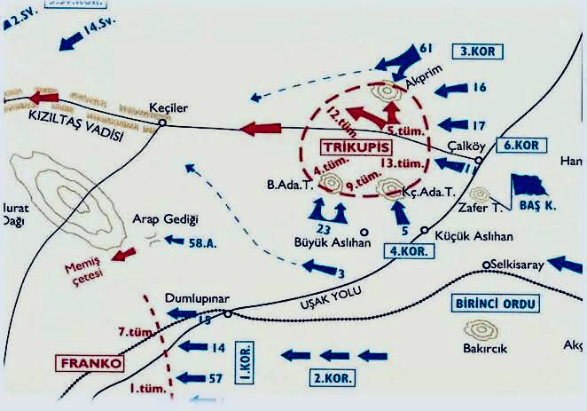 Akşam olduğunda düşman birlikleri büyük oranda yok edilmiş, aralarında Yunan Başkomutanı Trikopis’in de bulunduğu bazı kılıç artıkları Kızıltaş vadisinden kaçmayı başarmıştı…