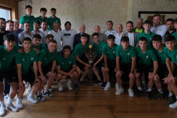 Bursa Büyükşehir Belediye Başkanı Mustafa Bozbey ve Bursaspor adına Gençlik Geliştirme Sorumlusu Okan Yılmaz, başarılarından ötürü şampiyon takıma altın hediye etti.