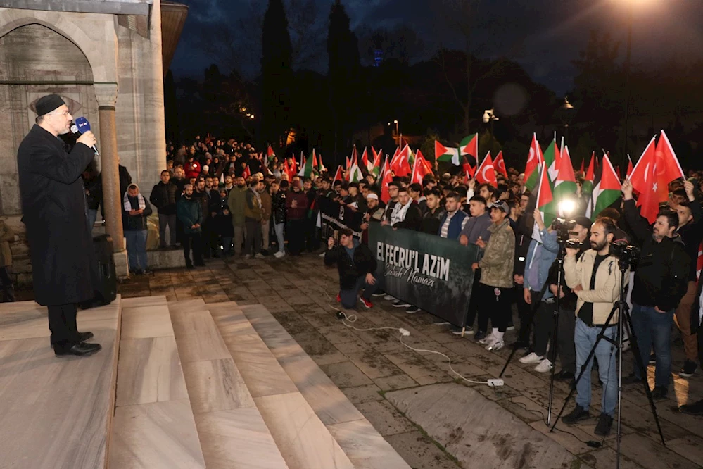 Beytülmakdis Öncüleri Derneği tarafından düzenlenen El Fecru'l Azim' sabah namazı buluşmasında konuşan Yazar Muhammed Emin Yıldırım, 'Mekke aklımız, Medine kalbimiz, Kudüs gözümüz, İstanbul elimizdir. Gözümüzde hançer olduğu için görmüyoruz. O hançeri bu elle çıkaracağız. Kudüs özgür oluncaya kadar gayretimizden vermeyeyeceğiz' dedi.