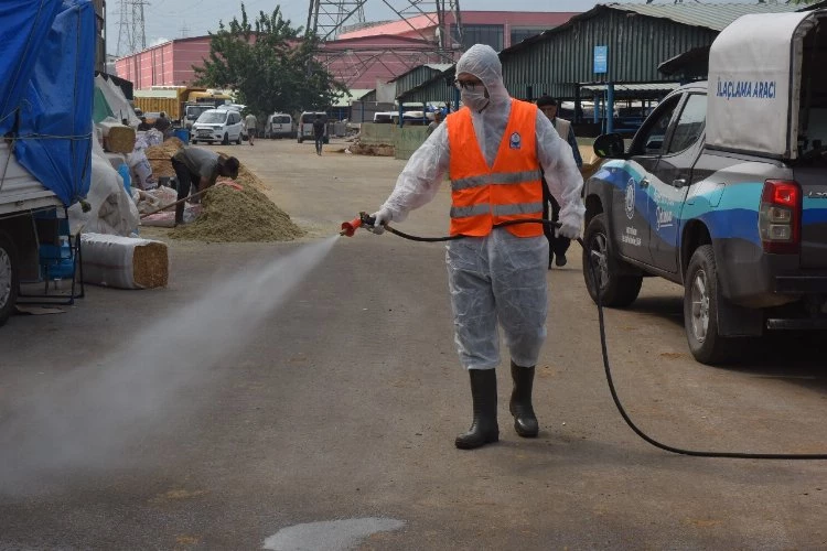 BURSA (İGFA) - Kurban Bayramı yaklaşırken Yıldırım Belediyesi insan, hayvan ve çevre sağlığının korunması amacıyla, ilçedeki kurban satış alanlarında başlattığı ilaçlama çalışmalarına titizlikle devam ediyor. Büyük ve küçükbaş hayvanların satışının yapıldığı kurban satış noktaları, Yıldırım Belediyesi Veteriner İşleri Müdürlüğü’ne bağlı ekipler tarafından düzenli olarak ilaçlanıyor.