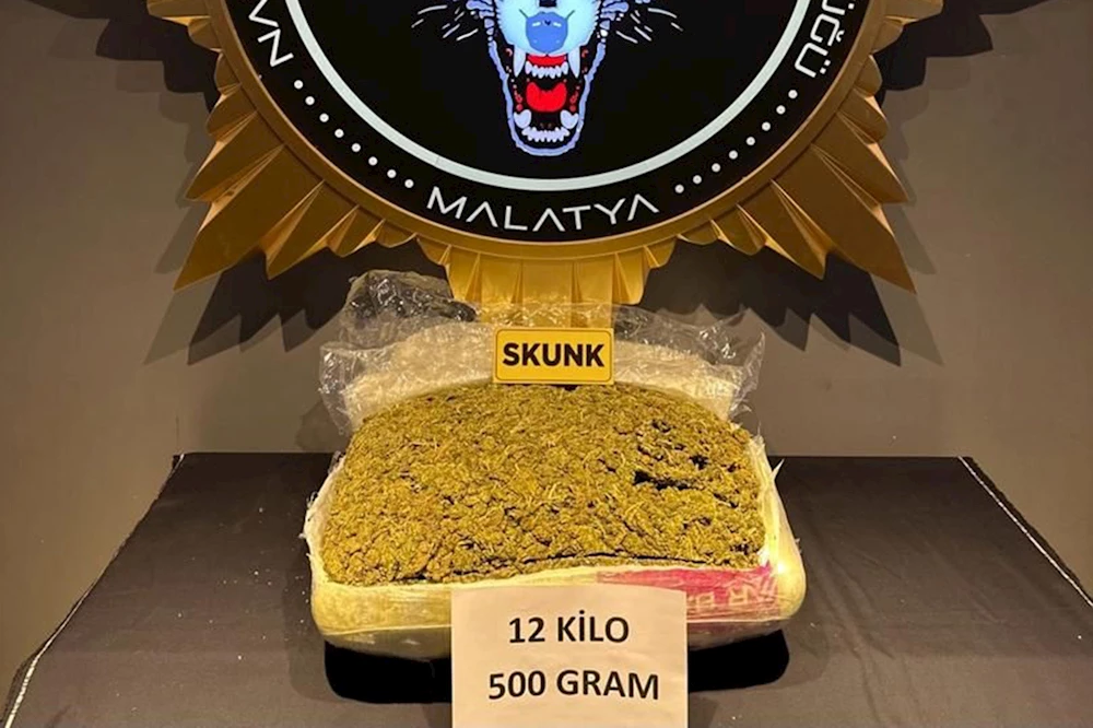 Edinilen bilgiye göre, Malatya İl Emniyet Müdürlüğü narkotik suçlarla mücadele kapsamında, doğu illerinden batı illerine seyir halinde olan şehirlerarası yolcu otobüsünde arama yapıldı. Denetim esnasında narkotik arama köpeğinin tepki verdiği bir valiz içerisinden 12 kilogram 500 gram skunk maddesi ele geçirildi. Konu ile ilgili gözaltına alınıp adli makamlara sevk edilen 1 şahıs tutuklanarak cezaevine konuldu.