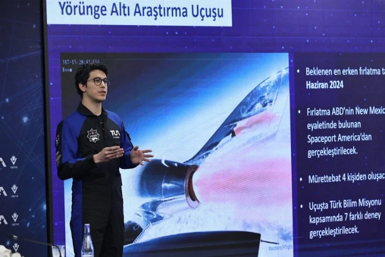 Türkiye için uzay bilimi ve teknolojilerinde yeni bir dönem başladığına dikkati çeken Bakan Kacır, "Diğer astronotumuz Tuva Cihangir Atasever'in yörünge altı araştırma uçuşu bulunuyor. Nasıl ki Alper Gezeravcı’nın tarihi uzay yolculuğu ile gururlandıysak, Atasever'in yörünge altı araştırma uçuşu için de oldukça heyecanlıyız. Astronotumuz Atasever’in yörünge altı araştırma uçuşu, 8 Haziran 2024'te Virgin Galactic’in ABD'nin New Mexico eyaletinde bulunan Spaceport tesislerinden gerçekleşecek. Yaklaşık 1,5 saatlik bir sürede gerçekleşmesi planlanan bu uçuşta astronotumuzu taşıyacak 'VSS Unity' yörünge altı aracı önce bir taşıyıcı uçak aracılığıyla yaklaşık 45 bin fitlik yüksekliğe erişecek, ardından hibrit yakıtlı roket motorunu ateşleyerek yaklaşık 90 kilometre irtifaya ulaşacak. Yaklaşık 3 dakikalık serbest düşme fazında mikro yerçekimi ortamında, biyolojik moleküllerden gen analizlerine, metabolizma değişimlerinden baskılayıcı hücrelere, insülin kaleminden radyasyon analizine kadar 7 deney icra etmek de mümkün olacak.” diye konuştu.