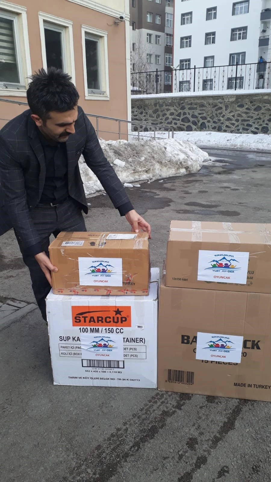 Erzurum Yurt Ay Derneği Başkanı Yunus Uzun ‘’Pazarcık ve Elbistan merkezi 7,7 ile 7,6 büyüklüğündeki iki büyük depremin büyüklüğü Kahramanmaraş, Hatay, Adıyaman, Malatya, Gaziantep, Şanlıurfa, Diyarbakır, Osmaniye, Adana’da yaşanan elim olayın ardından, orada bulunan çocuklarımızı bir nebze olsun sevindirebilmek adına Erzurum Yurt Ay Derneği olarak Bölgedeki çocuklarımıza oyuncaklar göndererek onların yaralarına ortak olmak istedik’ ’Dedi