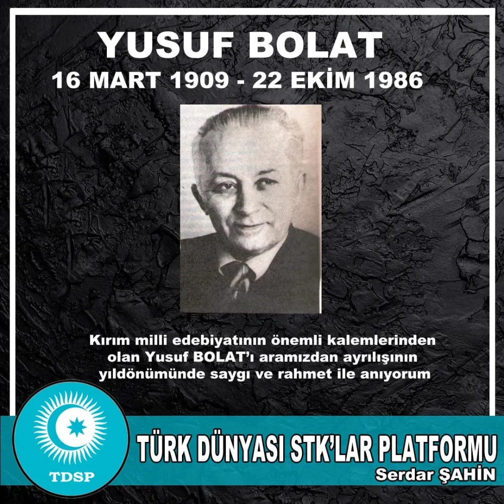 Yusuf Bolat (1909-1984), Kırım Tatar edebiyatının önemli isimlerinden biri olan yazar, şair ve gazetecidir. Kırım Tatar halkının kültürel ve milli kimliğinin korunmasına katkı sağlamıştır.