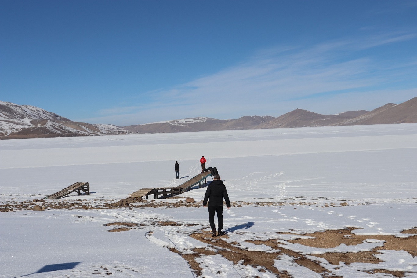 Yüzeyi tamamen buz tutan Balık Gölü, ziyaretçilerini cezbediyor