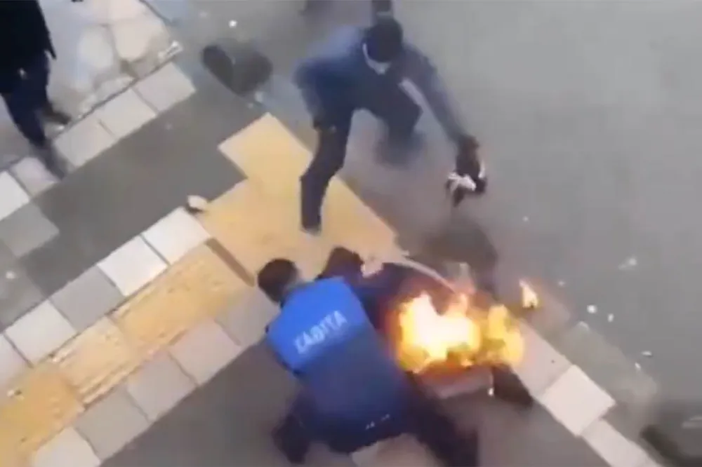Çevredeki esnaf ve zabıtanın yangın tüpü ile müdahalesi sonucu yanan vatandaş söndürüldü.