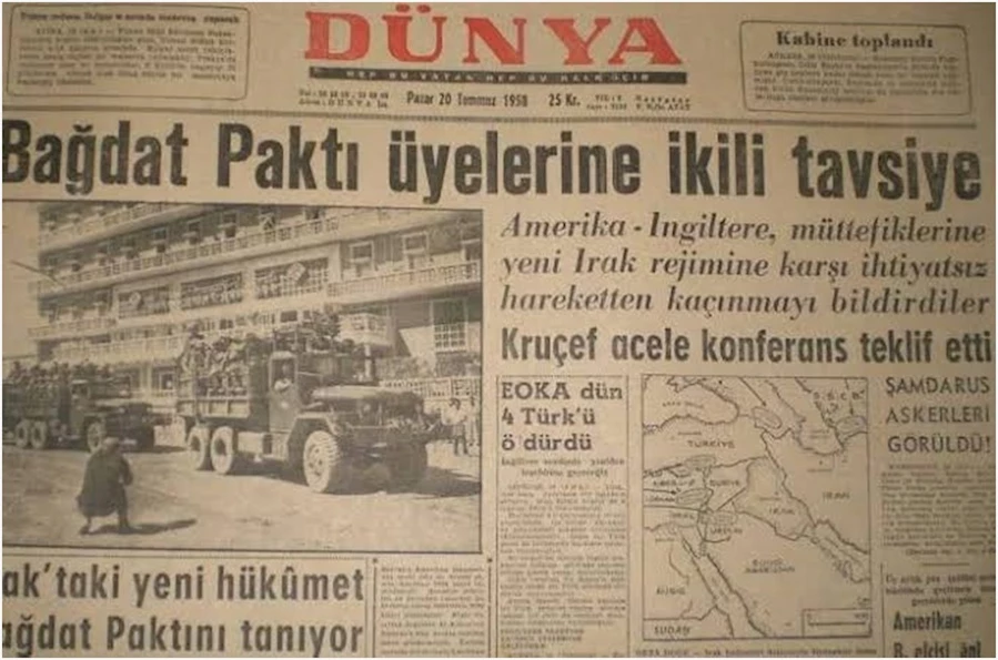 Komşu ve kardeş Irak'ta, 14 Temmuz 1958 tarihinde ülke ve bölge tarihinin seyrini değiştiren çok kanlı bir darbe yaşandı. Irak ordusu içindeki bir cunta, bu tarihte, Başbakan Nuri Said ile genç Kral II. Faysal’ın katledildiği kanlı bir darbe sonucu ülke idaresine el koydu.