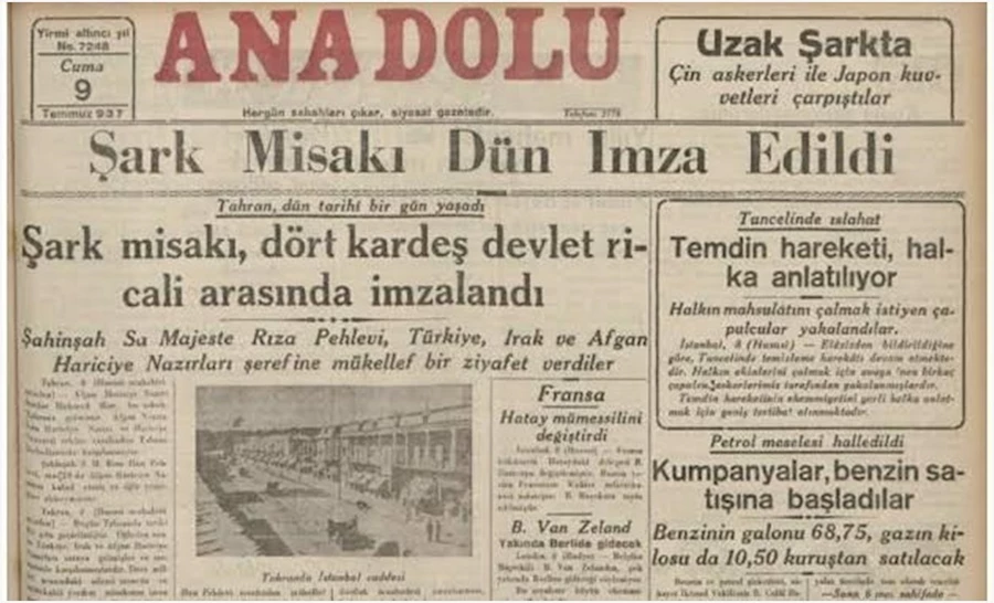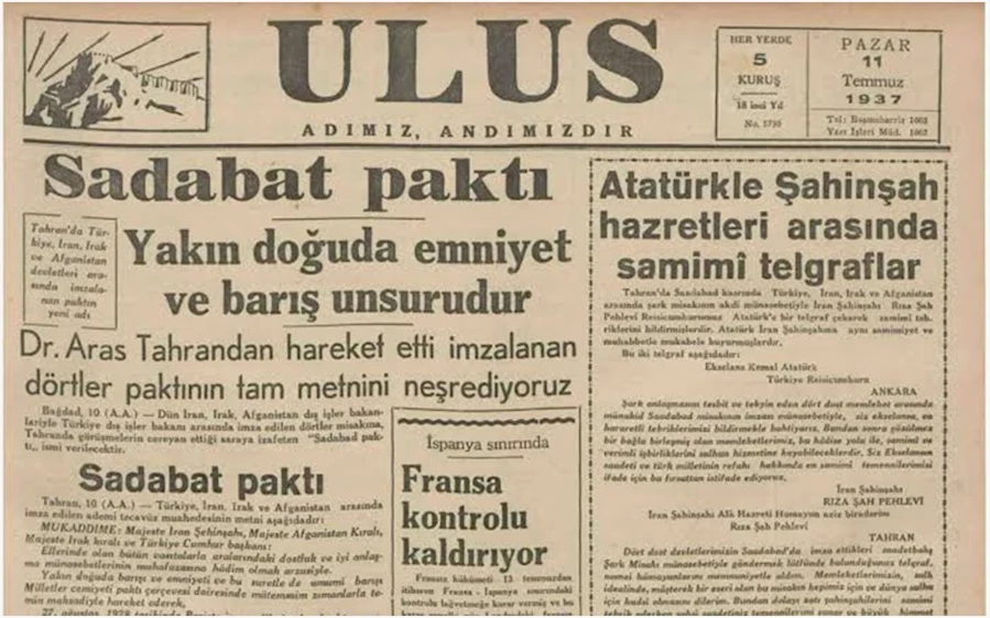 Batı sınırlarını güvence altına aldıktan sonra dikkatini Ortadoğu’ya veren genç Türkiye Cumhuriyeti, 8 Temmuz 1937’de İran, Irak ve Afganistan'la kafa kafaya vererek Sadabat Paktı olarak bilinen dörtlü saldırmazlık antlaşması imzalandı.